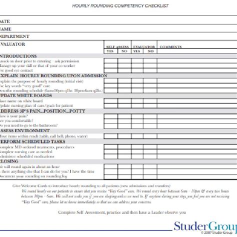 IYP - Download Studer Group Hourly Rounding Checklist PDF Library Genesis